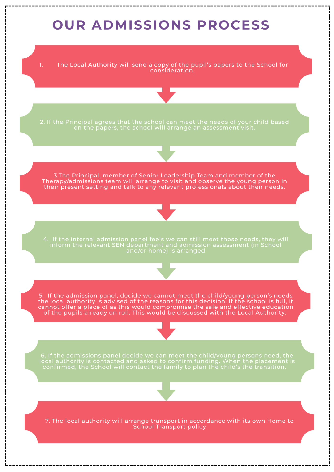 The school will always provide the Local Authority with views to help with the decision-making process. In order to do this, the school can undertake further assessments of prospective pupils to establish whether the school can meet their needs. At the request of the Local Authority (and having received appropriate paperwork), the school assessment team will observe/assess the pupil at their home or current school.