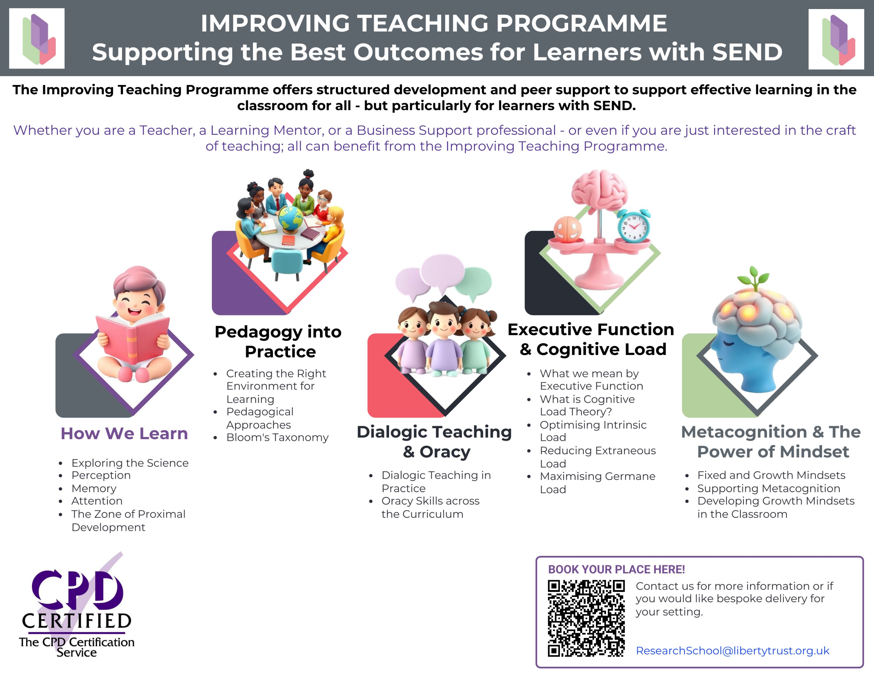 Whether you are a Teacher, a Learning Mentor, or a Business Support professional - or even if you are just interested in the craft of teaching; all can benefit from the Improving Teaching Programme.